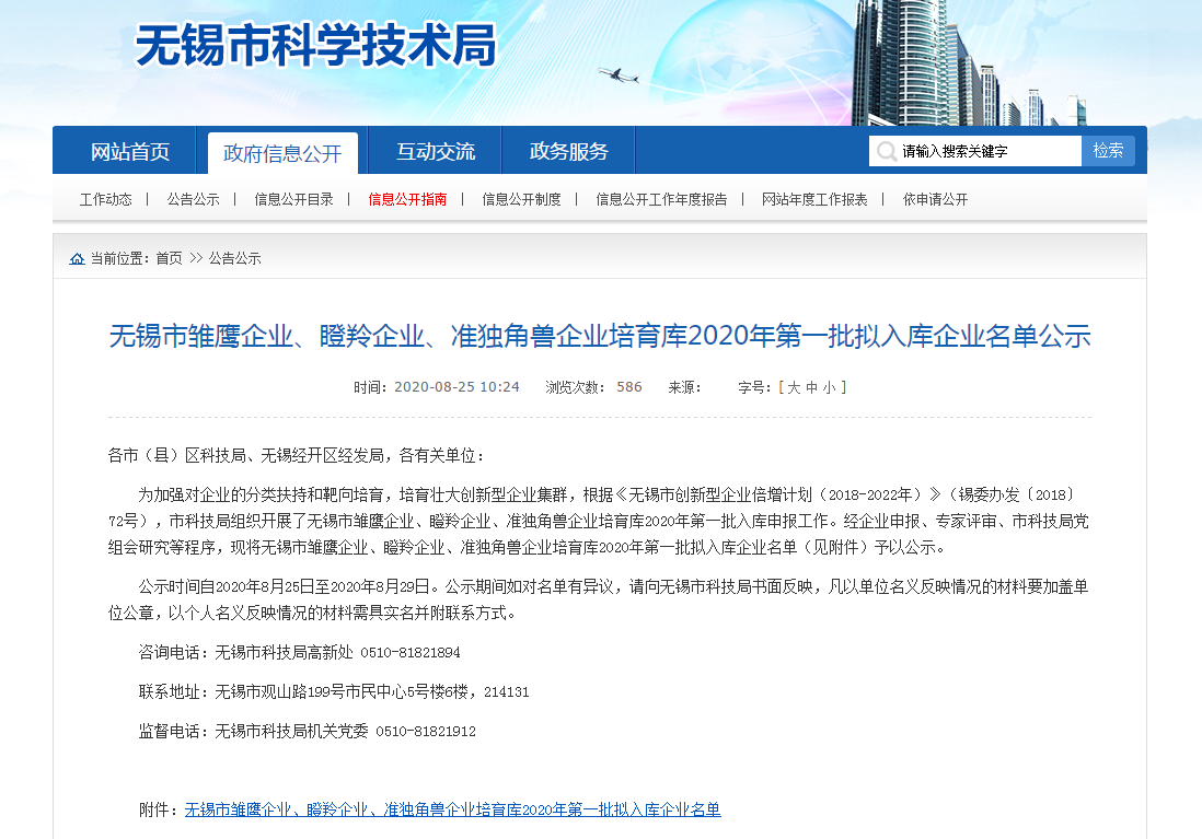 緊接著,8月25日無錫市科學技術局網站發布了關于無錫市雛鷹企業、瞪羚企業、準獨角獸企業培育庫2020年第一批擬入庫企業名單。據悉,該計劃基于無錫創新型企業集群倍增計劃而創立,旨在加強對企業的分類扶持和靶向培育,培育壯大創新型企業集群。經過層層推薦、評審、復核,江蘇海辰云科入選。