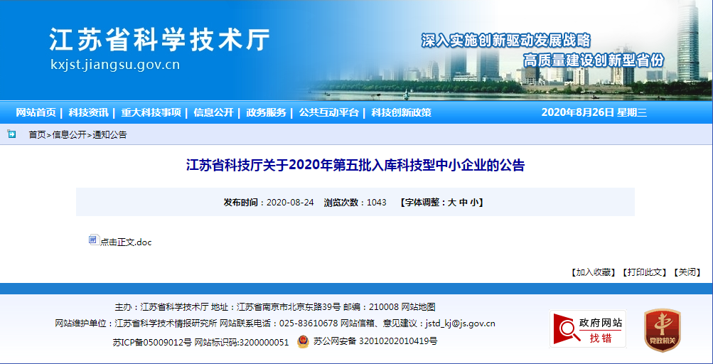 為了推進自主創新、加快企業產業結構調整,貫徹落實國家創新驅動發展戰略,加大對科技型企業的扶持與培養,全力助推企業持續健康發展,在各設區市評價工作機構審核中,江蘇海辰云科入選2020年第五批科技型中小企業。8月24日江蘇省科技廳關于2020年第五批入庫科技型中小企業進行了發布。