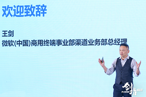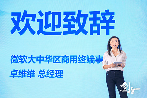 微軟大中華區(qū)商用終端事業(yè)部總經(jīng)理卓維維女士和微軟(中國)商用終端事業(yè)部渠道業(yè)務(wù)部總經(jīng)理王劍先生發(fā)表致辭。