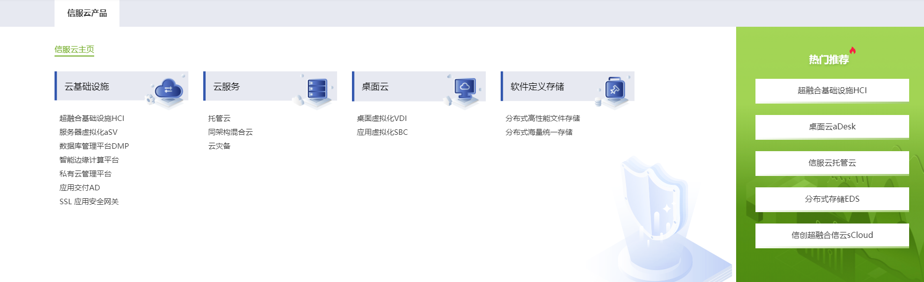 下一代防火墻;上網行為管理;SSL VPN網關;SD-WAN系列網關;安全感知系列;云安全資源池;等保一體機;EDR;EMM;應用交付AD;等保2.0;云及數據中心安全;廣域網安全;互聯網邊界安全;行業解決方案互聯網業務;安全托管服務;通報預警服務;威脅分析與處置服務;安全評估服務;應急響應服務;企業級分布式存儲;文件和對象存儲;全閃存存儲;桌面云超融合一體機;瘦終端;桌面云軟件;超融合一體機;企業級云平臺;云管理平臺;容器云;多云管理平臺;云災備